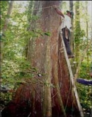 Detailed measurements on 2600 individual trees in footprint of Amazonian flux tower (Rice et al. 2004). Shown here is a Brazilian forester using a ladder to measure tree diameter above buttresses.
